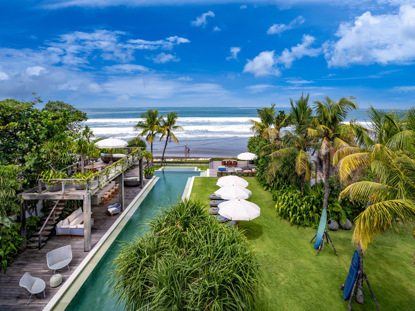 Noku Beach House is the epitome of luxury on Seminyak’s exclusive beachfront, featuring six bedrooms, a team of six-star staff including a gourmet chef and personal maître’d. This villa offers unparalleled holiday indulgence with an expansive entertaining bale, a spa with a plunge pool, lush tropical gardens, and a stunning 27-meter oceanfront pool. Rooftop gardens provide perfect spots for sunset drinks, making Noku Beach House a chic and serene retreat in the heart of vibrant Seminyak, Bali.
