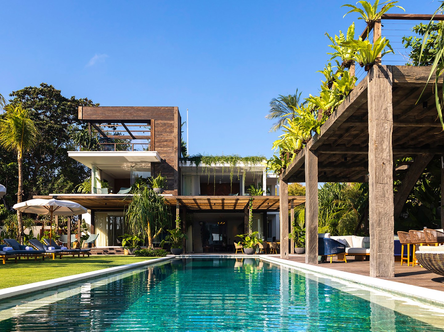Indoor living area; entertainment and dining terrace; pool balé; rooftop terraces; media room; outdoor lounge.